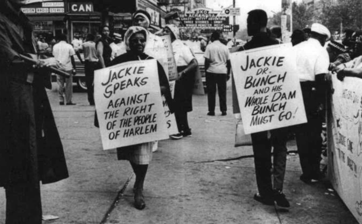 After Robinson denounced the protestors for using antisemitic slogans, Michaux’s group began to target the Chock full o’ Nuts in Harlem. Robinson, who was a vice president at Chock at the time, was specifically targeted. The New York Public Library